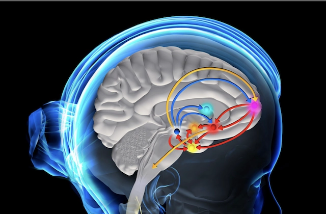 Cette activation du circuit de la récompense (aire tegmentale ventrale, noyau accumbens, hypothalamus) renforce la mémorisation du plaisir et favorise la répétition des comportements positifs.